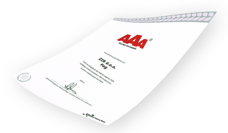 Izborom ZIR d.o.o. tvrtke garantirano odabirete kvalitetu i profesionalnost. S ponosom nosimo prestižni Certifikat bonitetne IZVRSNOSTI - Bisnode AAA.